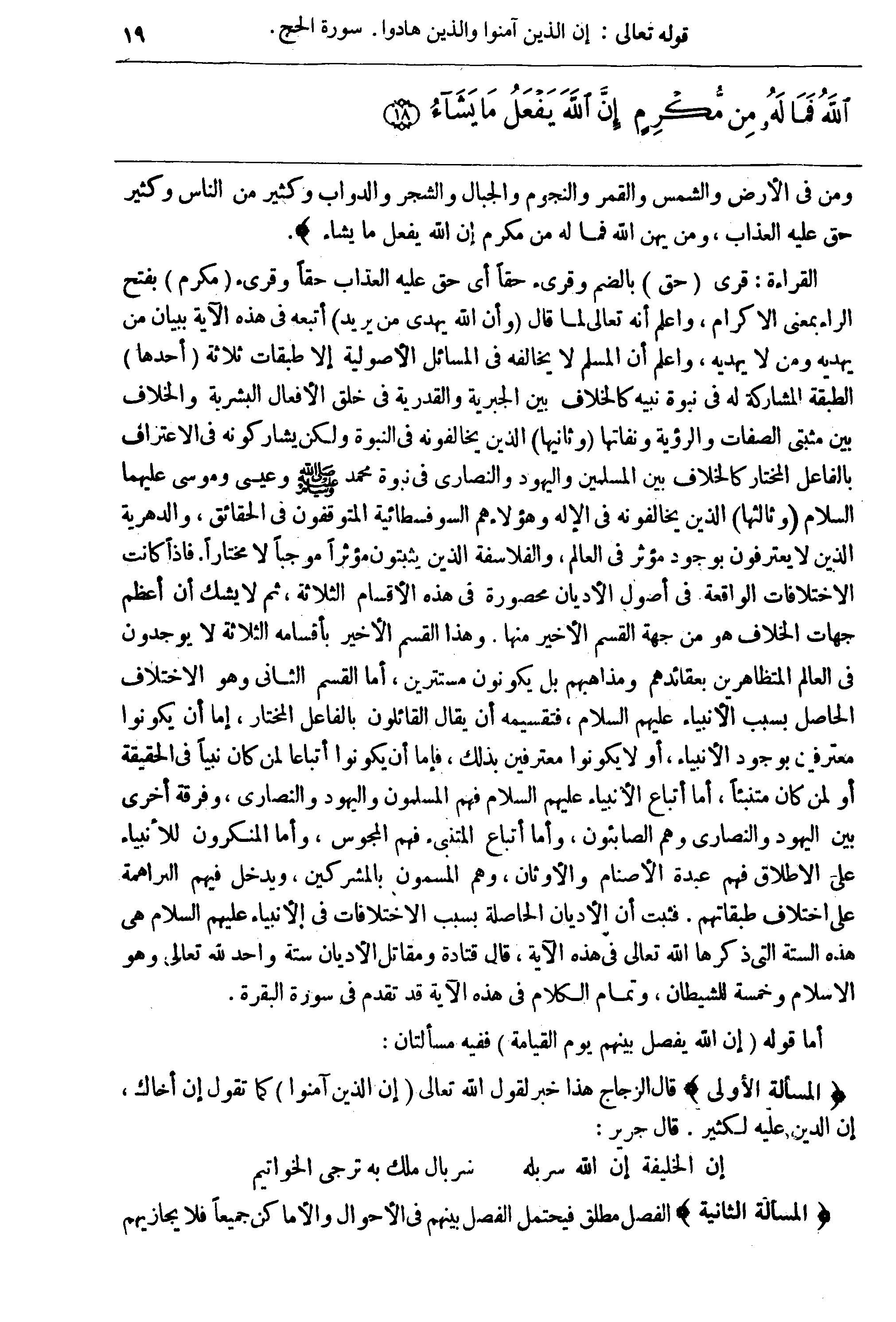 التفسير الكبير (الجزء الثالث والعشرون - من الحج إلى النور الآية 35)