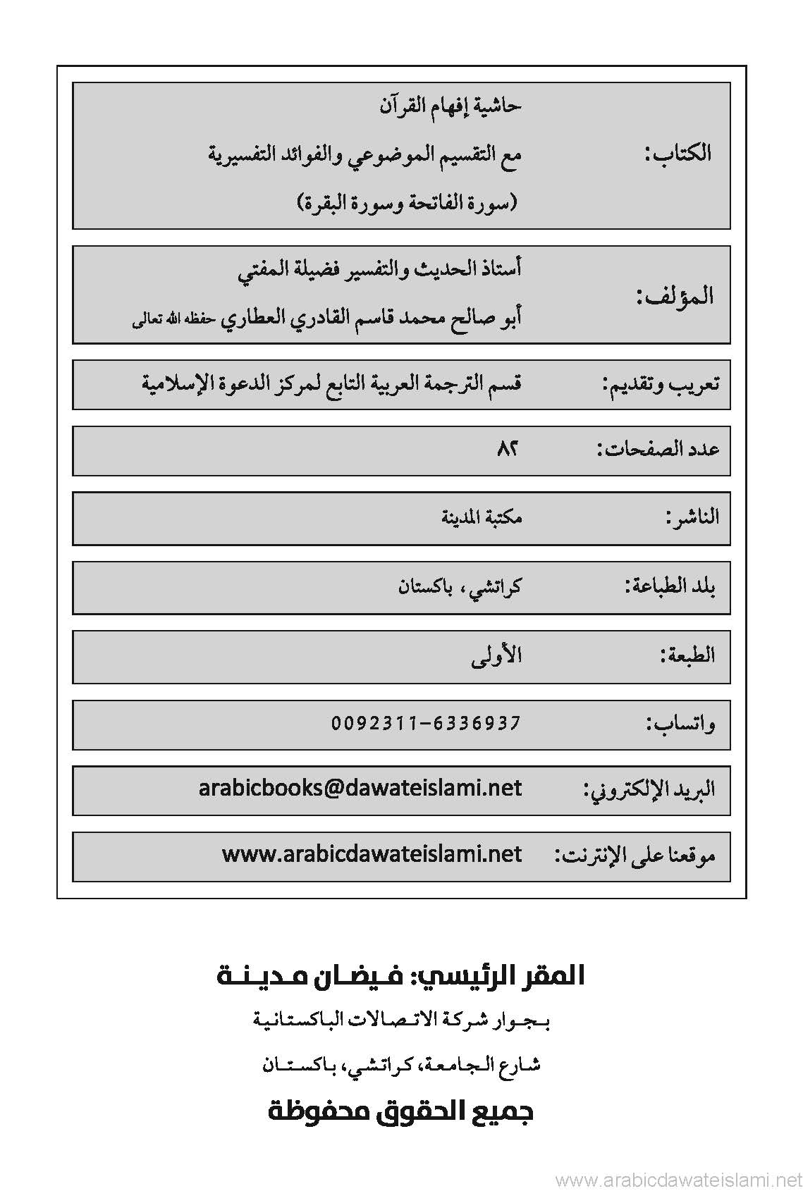 حاشية إفهام القرآن مع التقسيم الموضوعي والفوائد التفسيريّة (سورة الفاتحة وسورة البقرة)