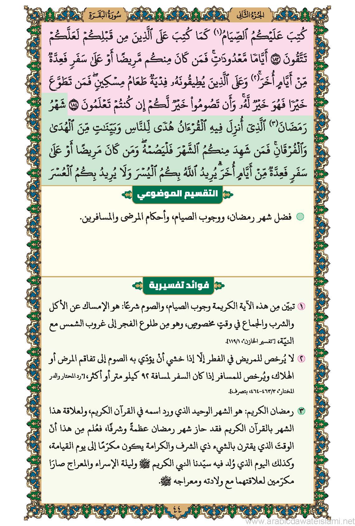حاشية إفهام القرآن مع التقسيم الموضوعي والفوائد التفسيريّة (سورة الفاتحة وسورة البقرة)