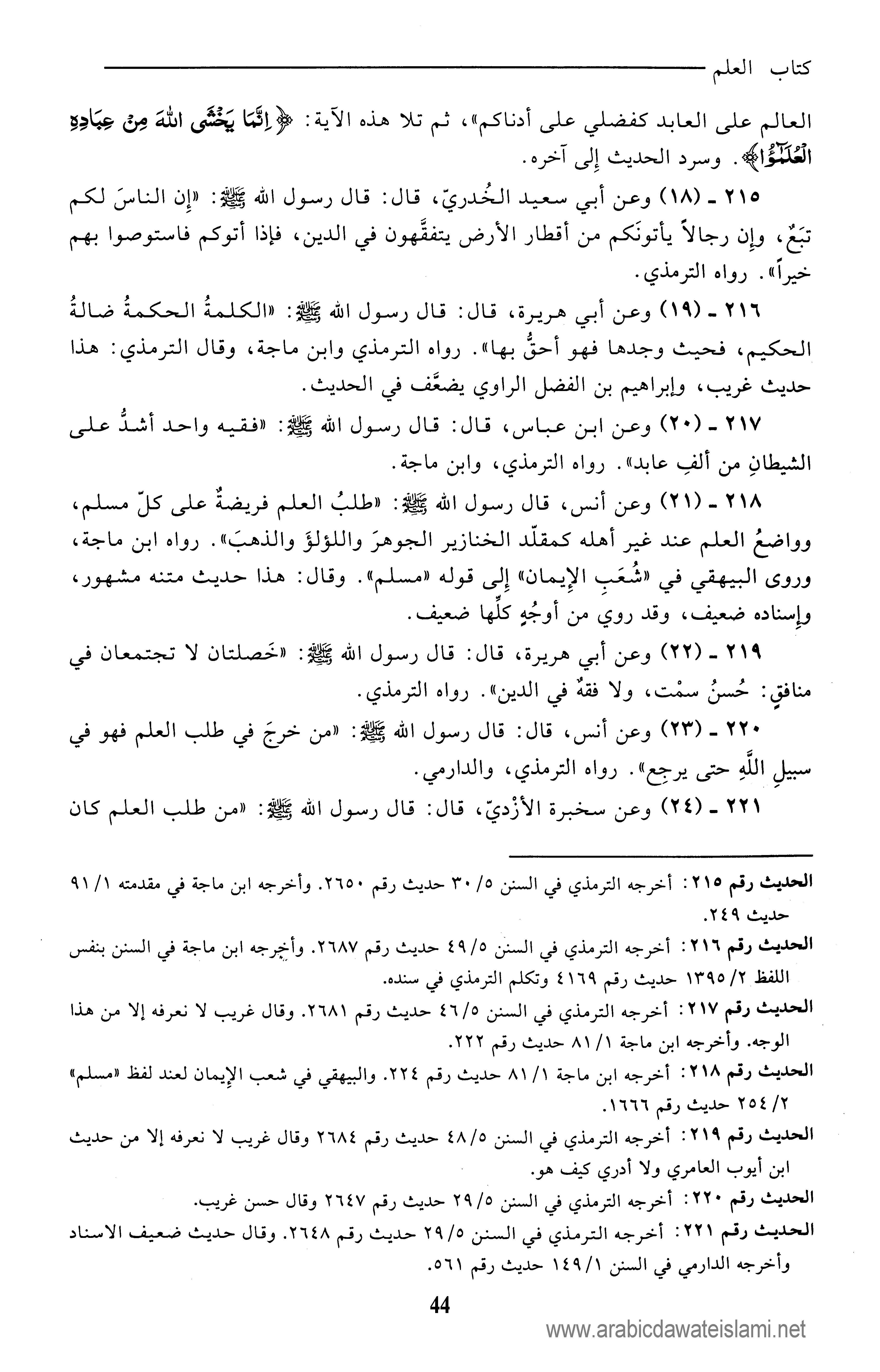 مشكوة المصابيح (كتاب الايمان والعلم و المناقب)