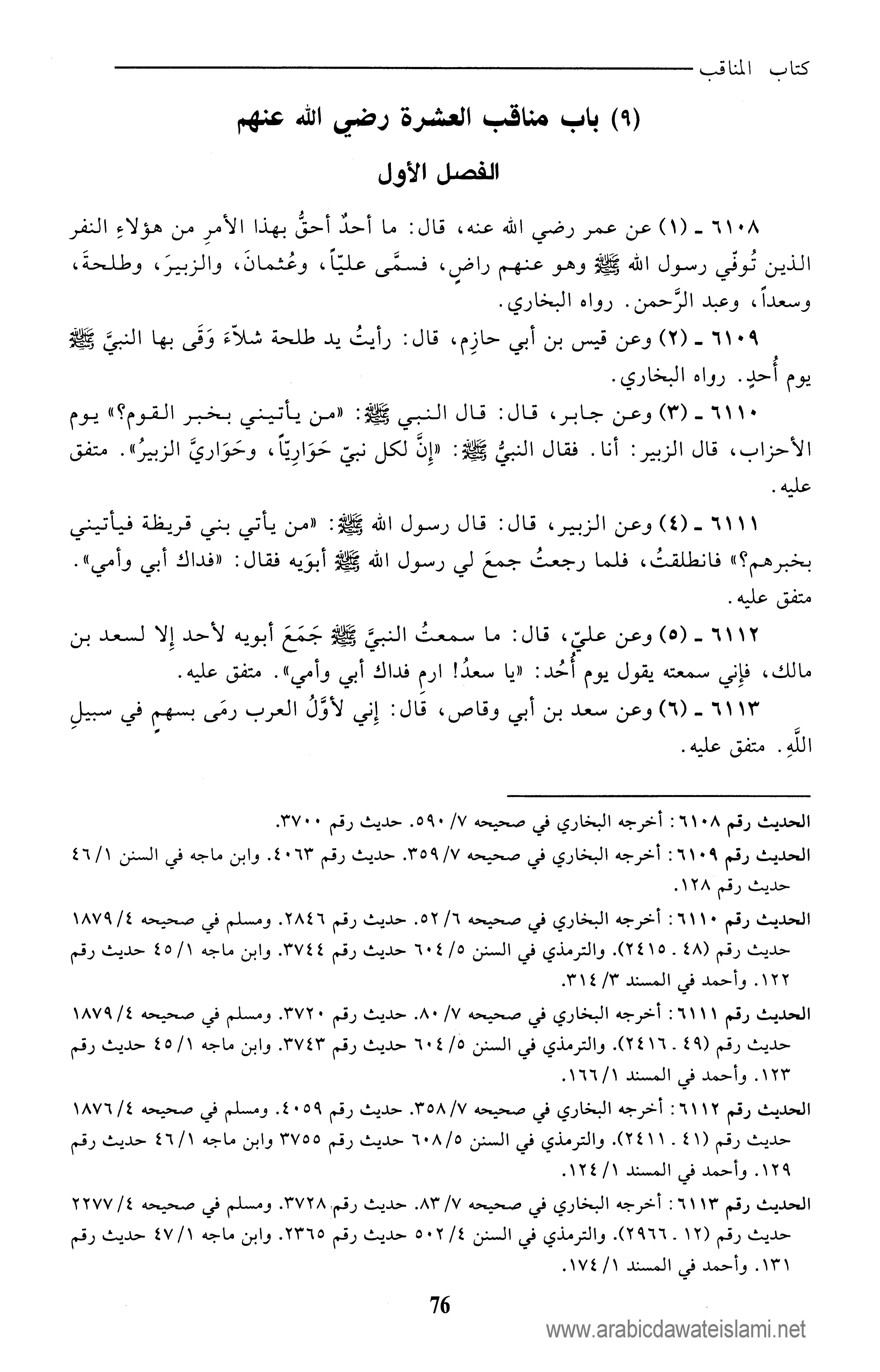 مشكوة المصابيح (كتاب الايمان والعلم و المناقب)