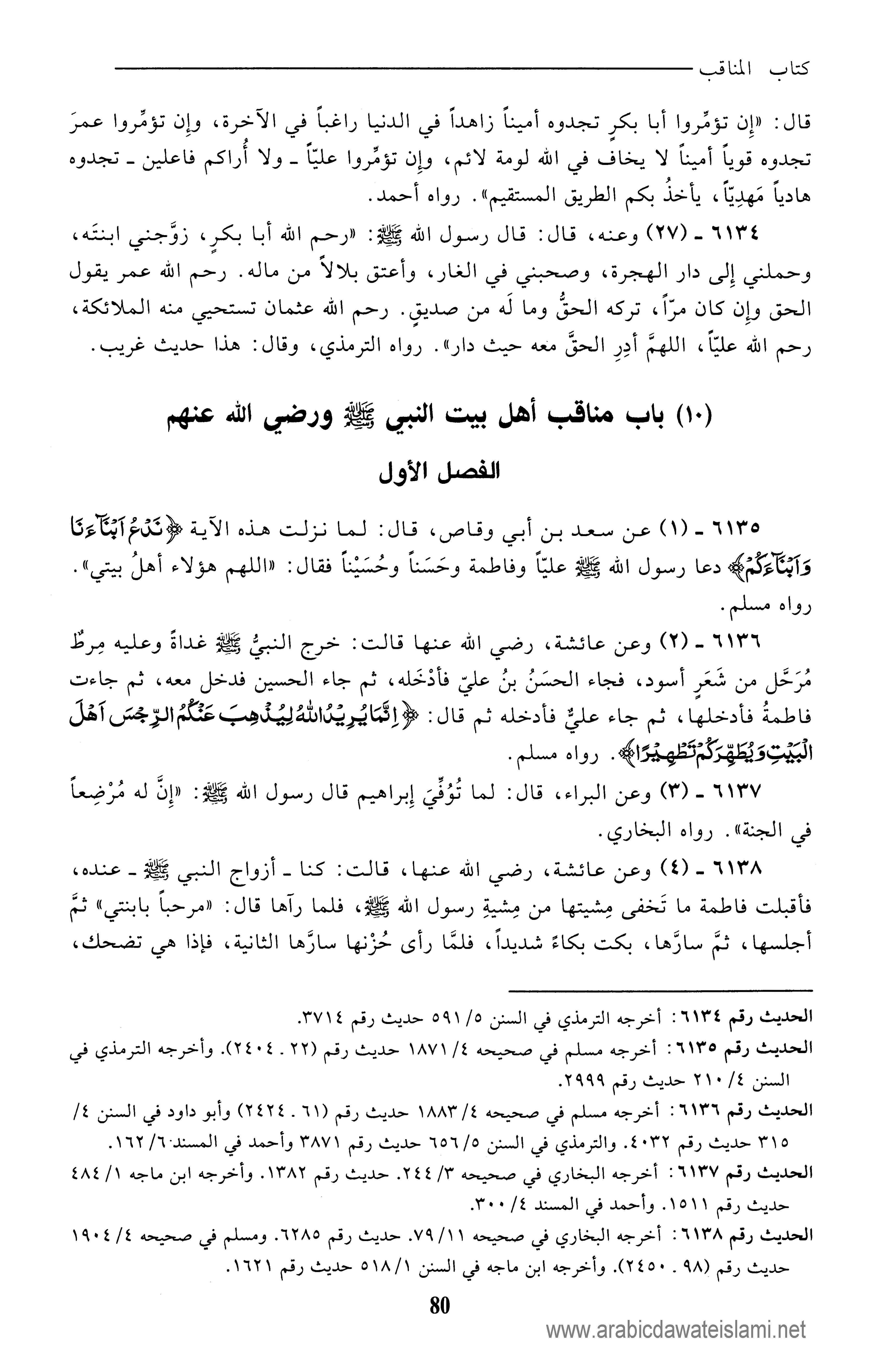 مشكوة المصابيح (كتاب الايمان والعلم و المناقب)