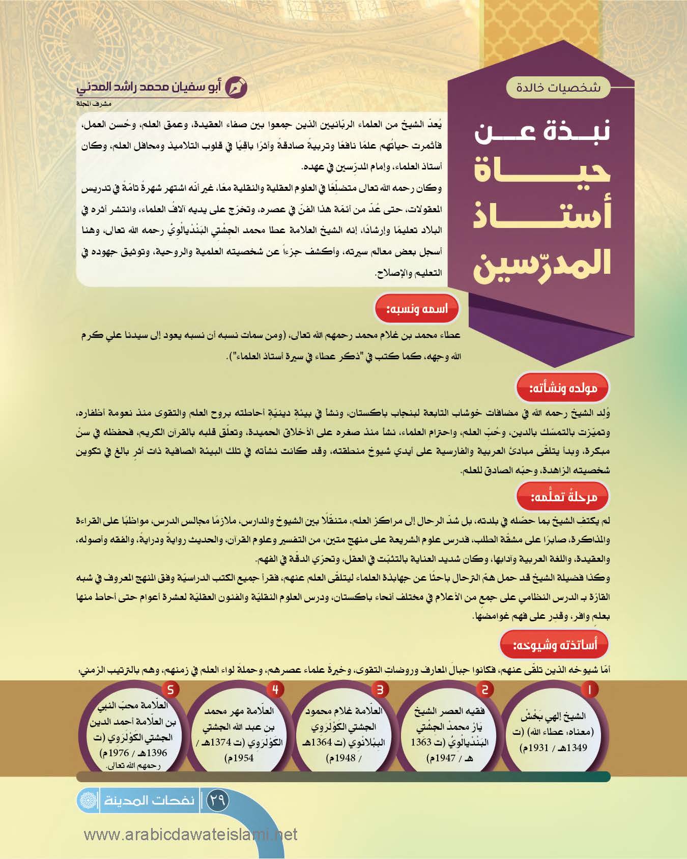 نبذة عن حياة أستاذ المدرسين