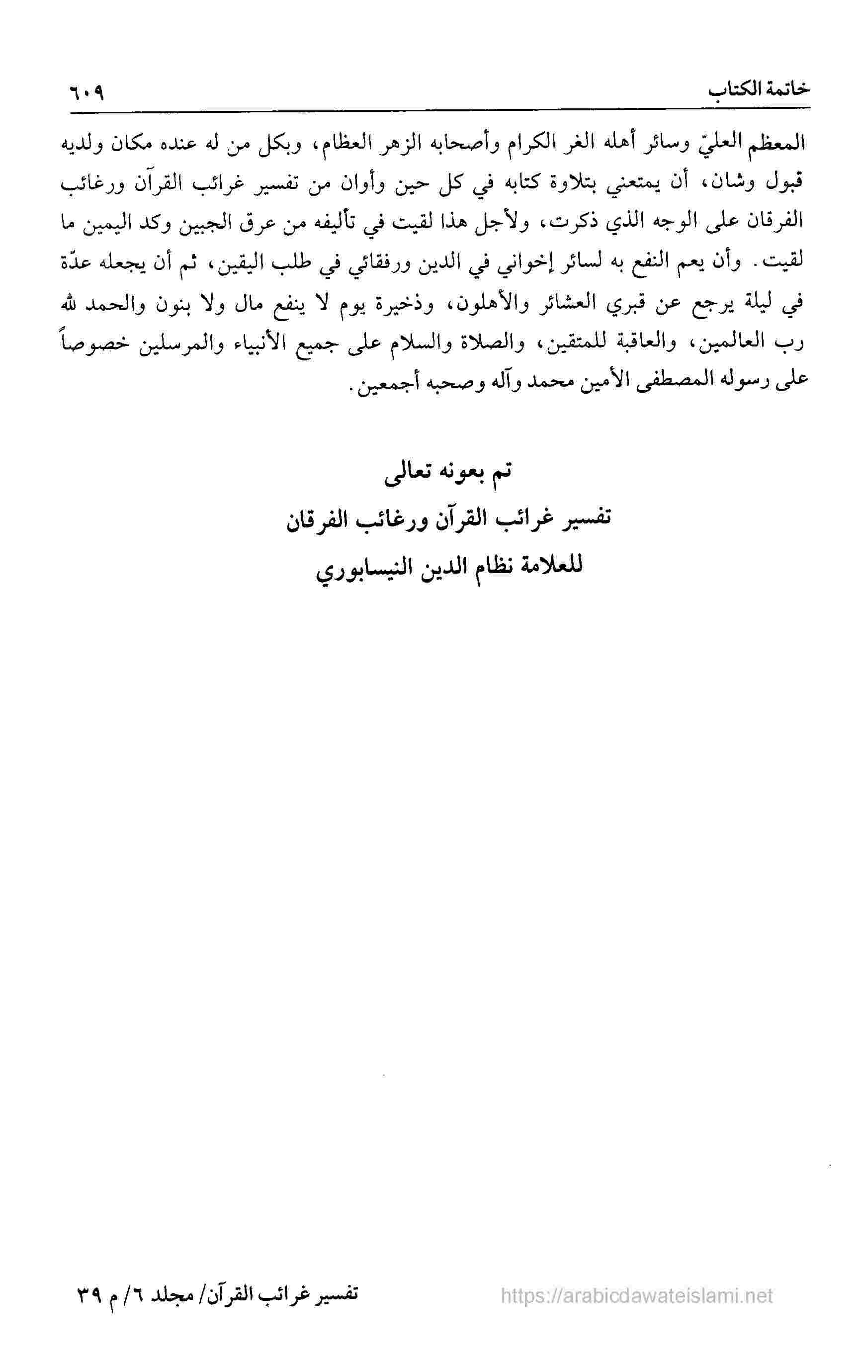 تفسير غرائب القرآن و رغائب الفرقان - الجزء السادس