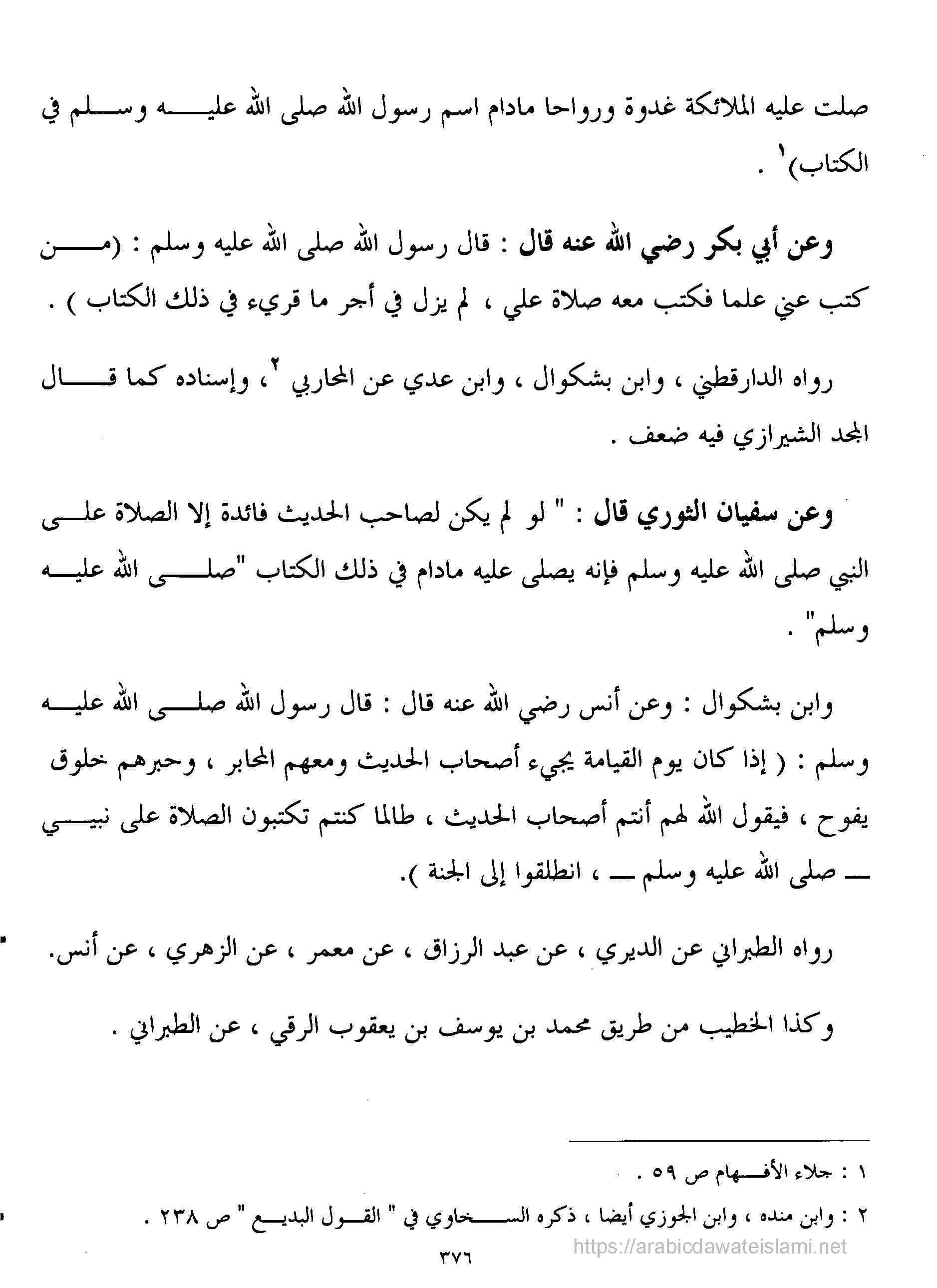 مسالك الحنفا الي مشاريع الصلاة علي النبي المصطفي صلي الله عليه وسلم