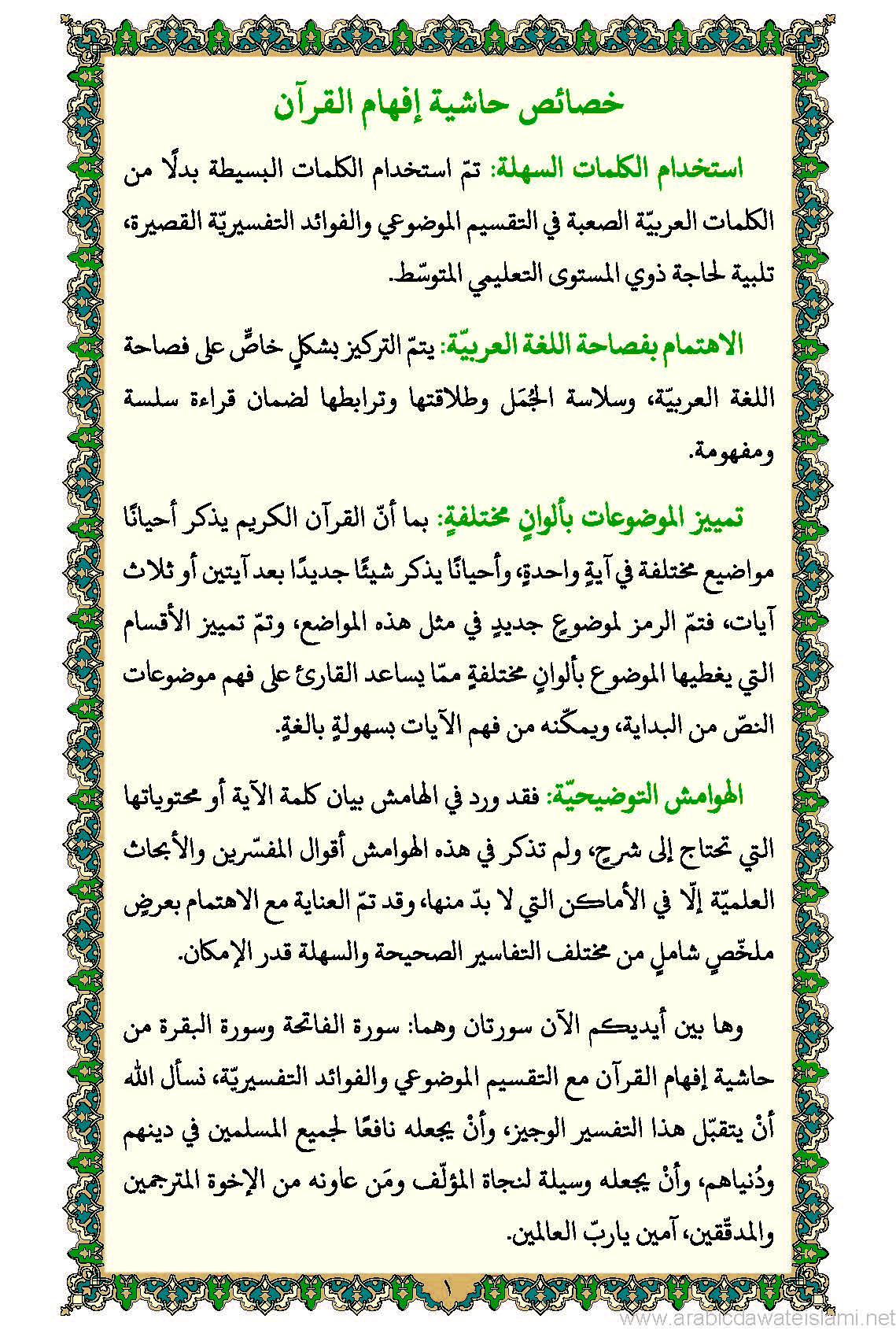حاشية إفهام القرآن مع التقسيم الموضوعي والفوائد التفسيريّة (سورة الفاتحة وسورة البقرة)