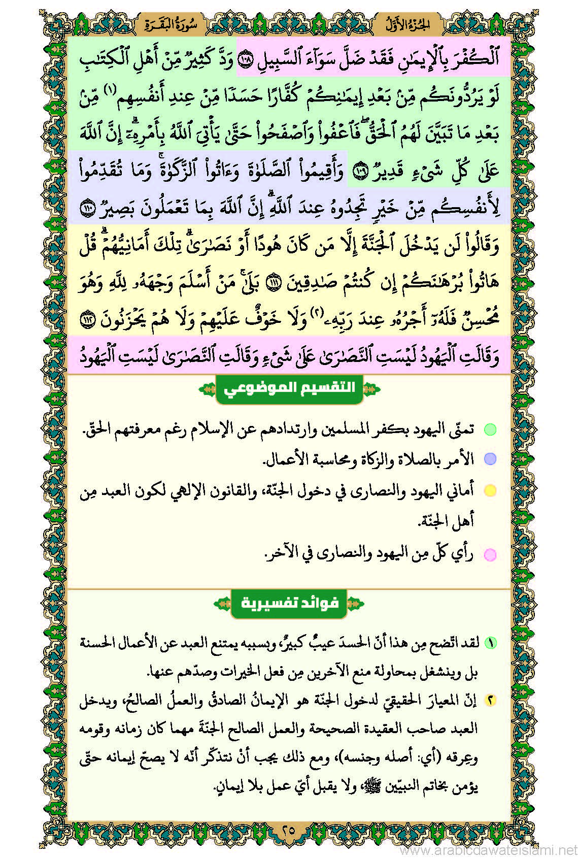 حاشية إفهام القرآن مع التقسيم الموضوعي والفوائد التفسيريّة (سورة الفاتحة وسورة البقرة)