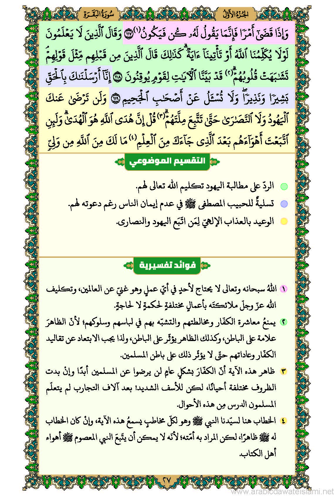 حاشية إفهام القرآن مع التقسيم الموضوعي والفوائد التفسيريّة (سورة الفاتحة وسورة البقرة)