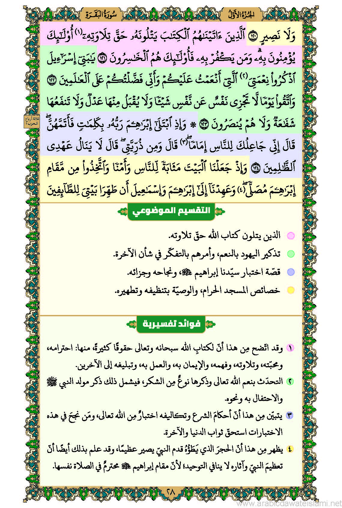 حاشية إفهام القرآن مع التقسيم الموضوعي والفوائد التفسيريّة (سورة الفاتحة وسورة البقرة)