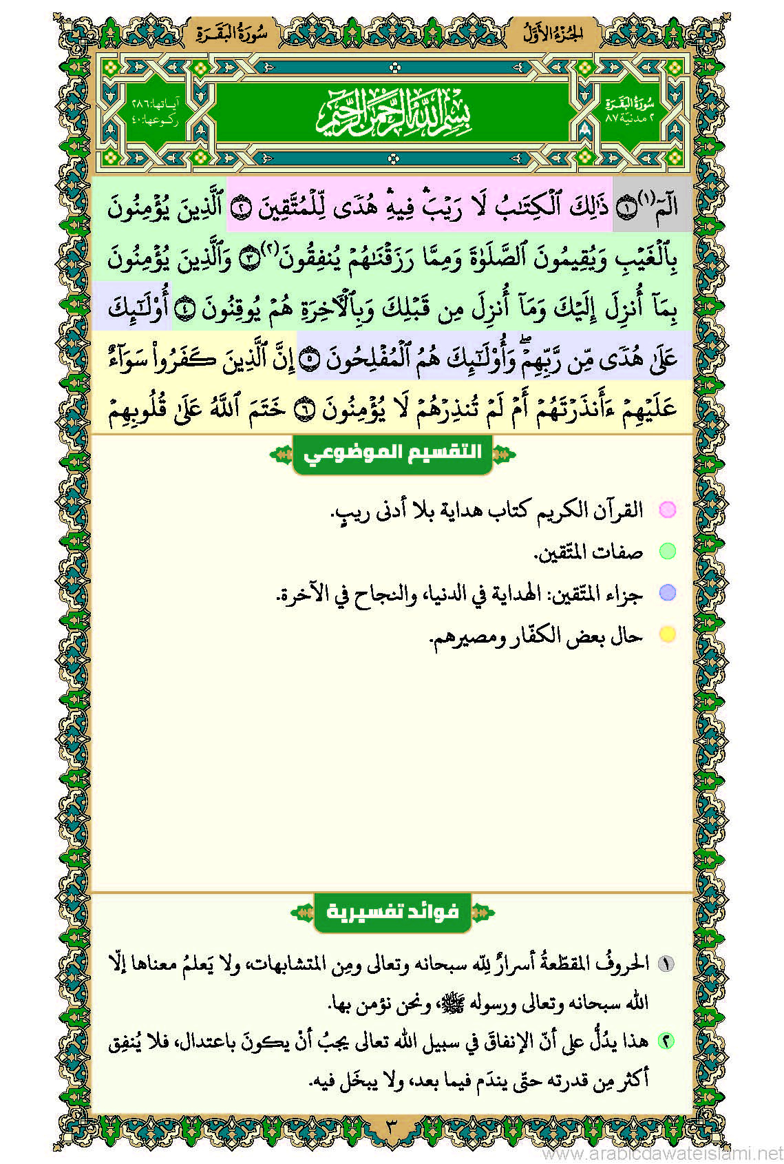 حاشية إفهام القرآن مع التقسيم الموضوعي والفوائد التفسيريّة (سورة الفاتحة وسورة البقرة)