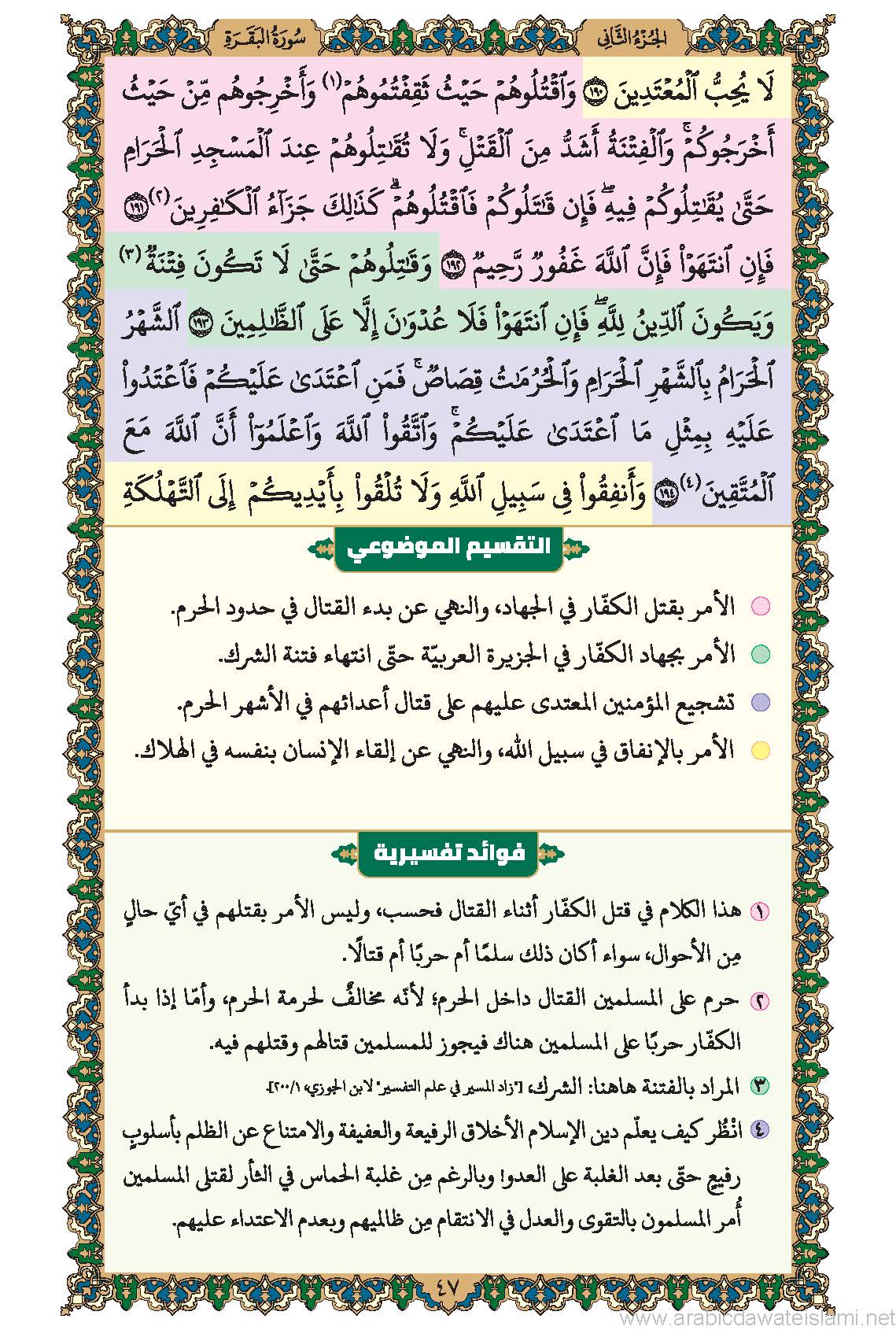 حاشية إفهام القرآن مع التقسيم الموضوعي والفوائد التفسيريّة (سورة الفاتحة وسورة البقرة)