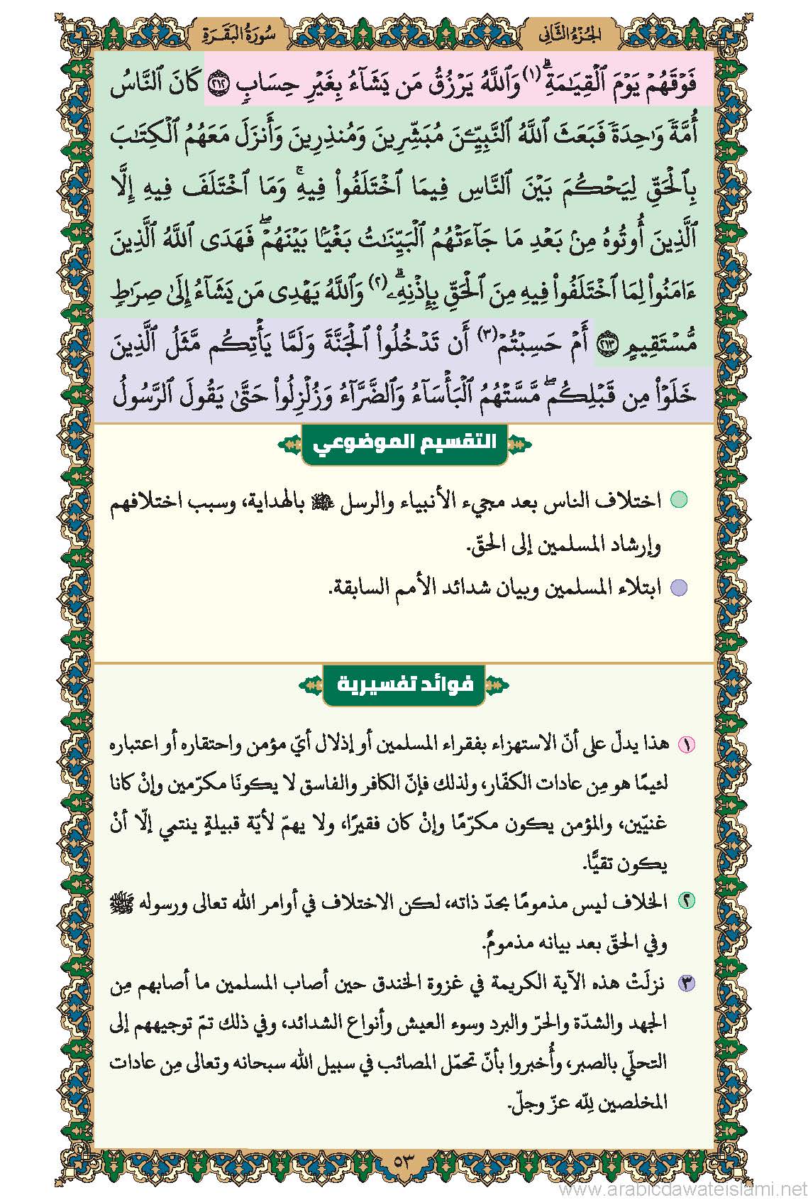 حاشية إفهام القرآن مع التقسيم الموضوعي والفوائد التفسيريّة (سورة الفاتحة وسورة البقرة)