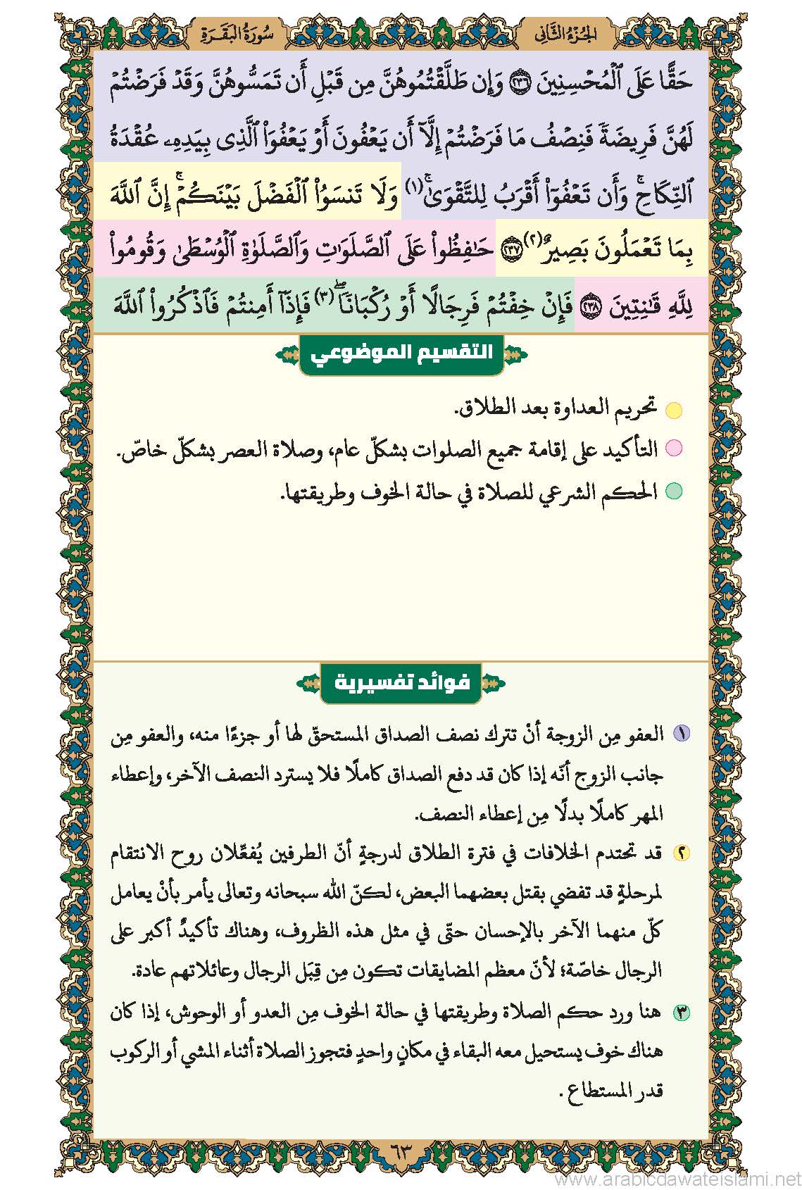 حاشية إفهام القرآن مع التقسيم الموضوعي والفوائد التفسيريّة (سورة الفاتحة وسورة البقرة)